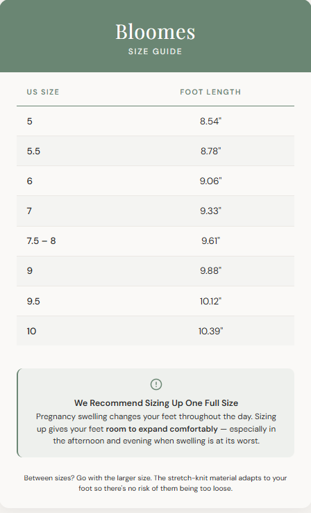 Regular shoes aren't made for pregnancy. They squeeze your swollen feet, make you bend down to put them on, and leave your back and knees aching by the afternoon. Bloomes were designed specifically for those pregnancy and postpartum feet, so you stay comfortable from morning to night without forcing your feet into shoes that stopped fitting weeks ago.