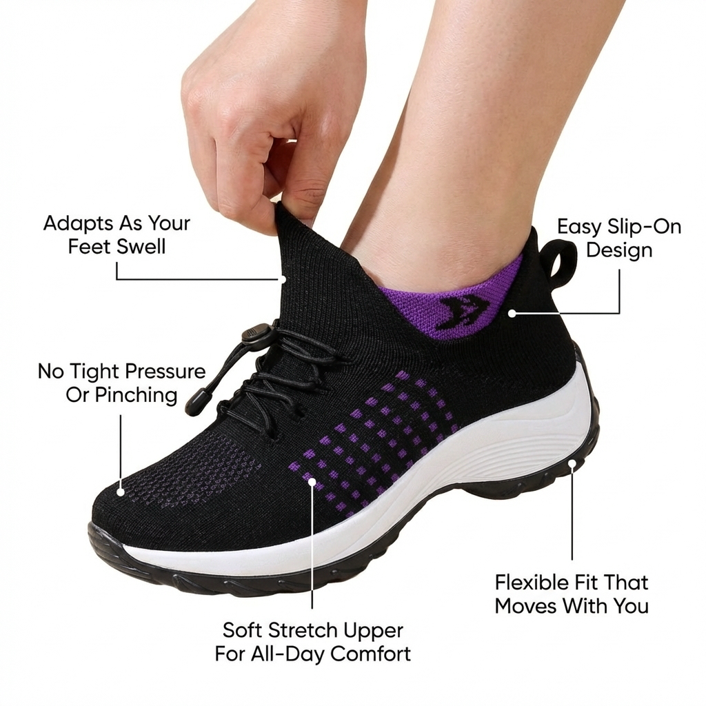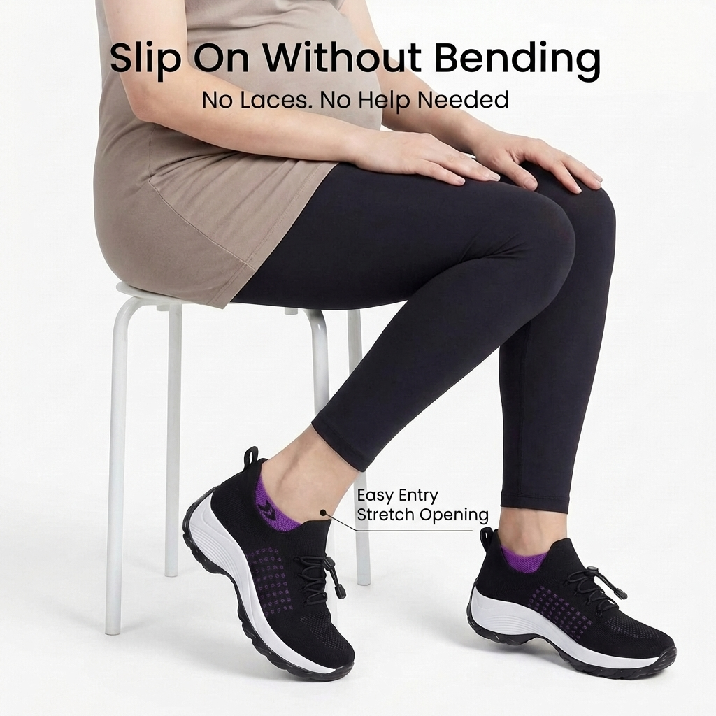 You just step in standing up. No bending. No laces. No hands. Your foot slides right in and the knit hugs it.